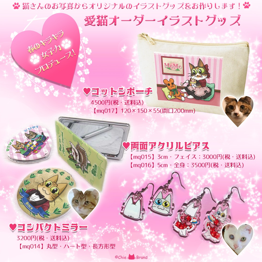 アトリエ・CHIE-BRANDでは、愛猫さんのお写真からイラストを描き上げ、様々なグッズをお作りしております!