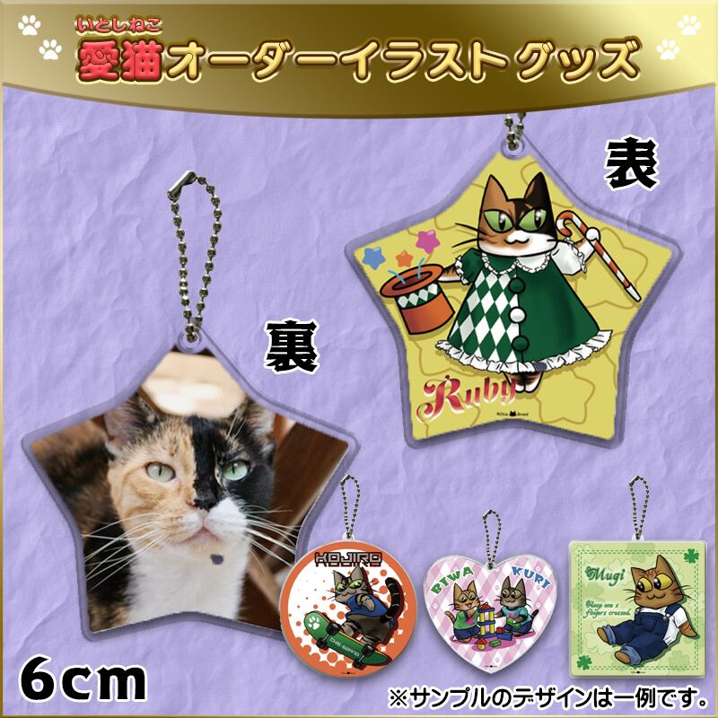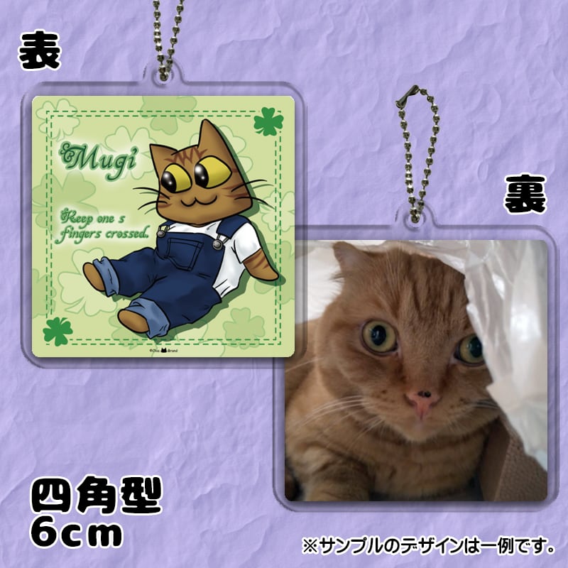 表面にはイラストを、裏面にはモデルの猫さんのお写真が入ります!