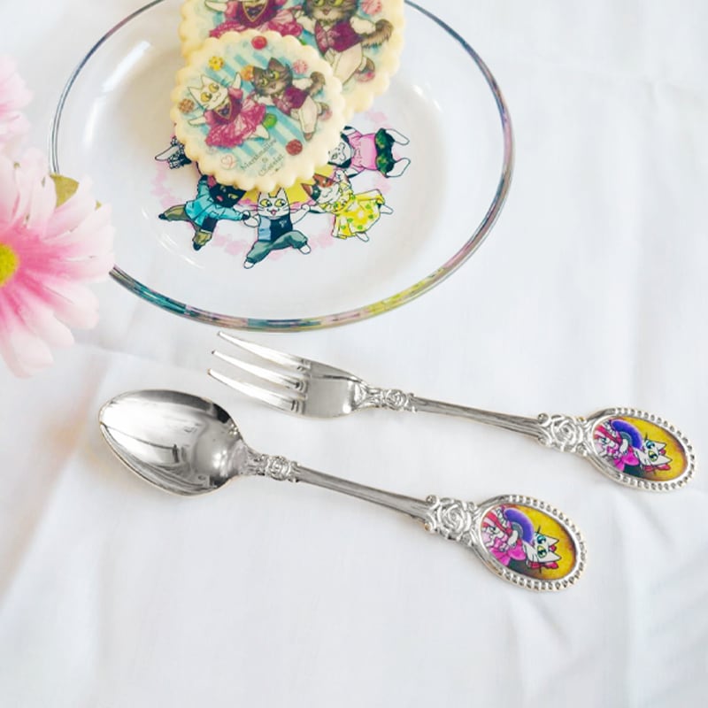 愛猫さんのイラストが施された素敵なフォークで、いつものスィーツタイムが特別な瞬間に♪